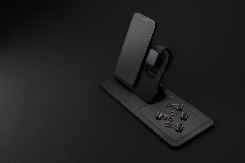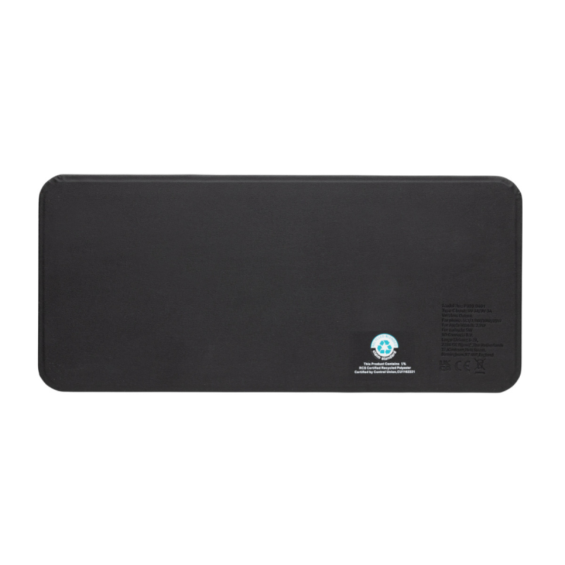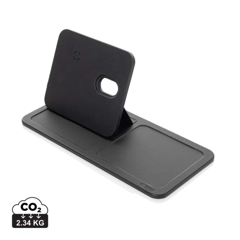Luxusní skládací bezdrátová nabíječka 3 v 1 vyrobená z recyklovaného PU RCS. Celkový recyklovaný materiál: 5 % na základě celkové hmotnosti produktu. Certifikace RCS zajišťuje kompletně certifikovaný dodavatelský řetězec recyklovaných materiálů. Bezdrátová nabíječka je vybavena magnetickou 15W bezdrátovou nabíječkou, 5W bezdrátovou nabíječkou vhodnou pro pouzdra na sluchátka nebo jiná malá zařízení s možností bezdrátového nabíjení a 2,5W bezdrátovou nabíječkou pro chytré hodinky ( pouze hodinky Apple). Součástí balení je 120 cm kabel TPE. Baleno ve směsném obalu FSC®. Nabíječka a příslušenství 100% bez PVC. Minimální příkon: 9V/3A pro optimální použití. Výstup: Telefon: 9V/1.1A; 9V/1.67 A/(15W), Sluchátka: 5V/1A (5W), Hodinky: 5V/0.5A.