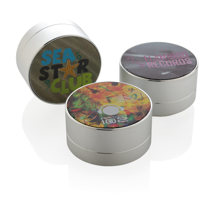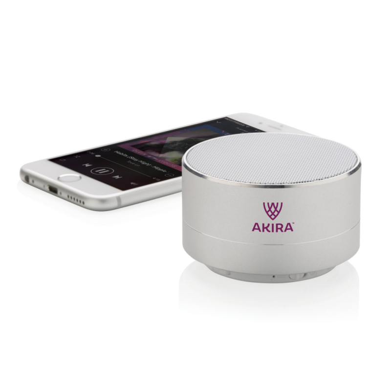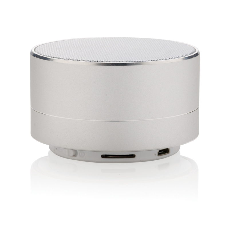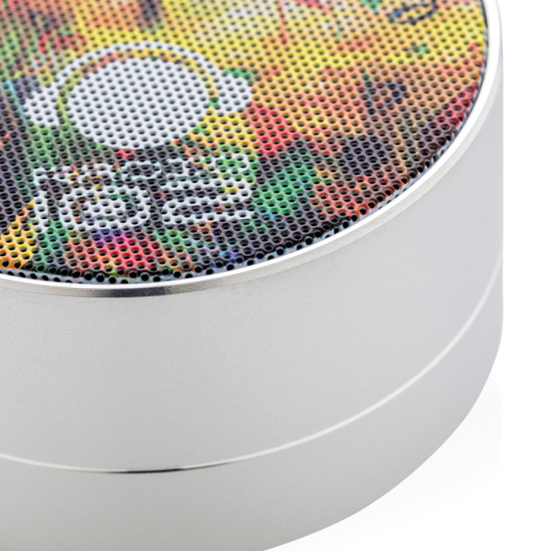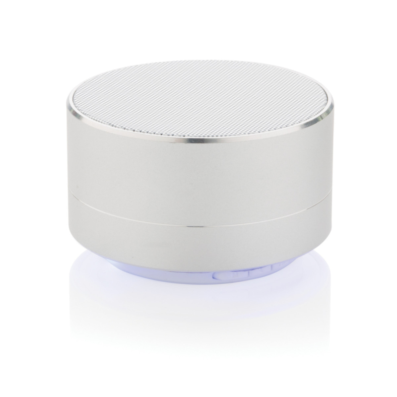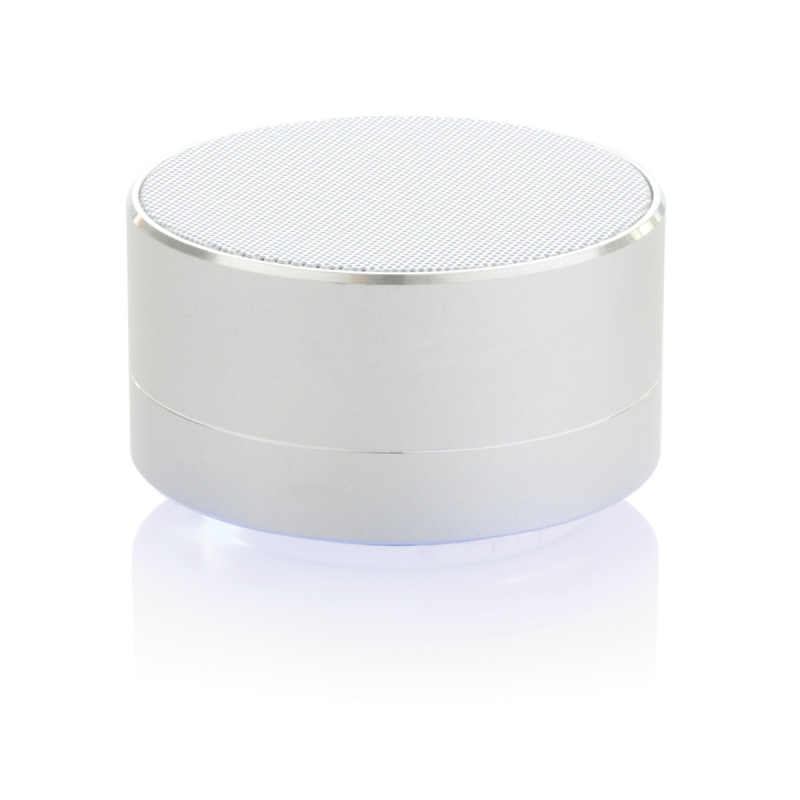 Hliníkový 3W reproduktor s vestavěnou 300mAh lithiovou baterií. S dobou přehrávání až 4 hodiny na jedno nabití a provozním dosahem až 10 metrů. Včetně uklidňujícího modrého světla vespod přístroje. S funkcí zvednutí pro přijetí příchozího hovoru.