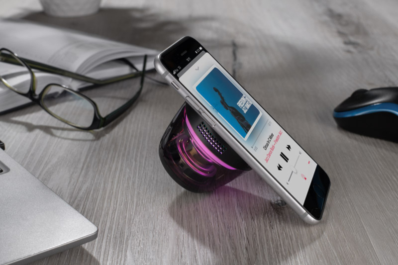 Bezdrátový reproduktor SONIQ je stylové a funkční zařízení, které poskytuje čistý zvuk a atraktivní pulzující podsvícení LED. Díky kapacitě baterie 600 mAh a výkonu 5 W vydrží nepřetržitě přehrávat hudbu až 4 hodiny. Je vybaven magnetickou základnou, takže může sloužit i jako stojánek na telefon. Reproduktor podporuje Bluetooth, karty micro SD a telefonní hovory díky vestavěnému mikrofonu. Nabíjení probíhá přes port USB-C a dosah bezdrátového připojení je až 10 metrů. Ideální pro mobilní a propagační použití.