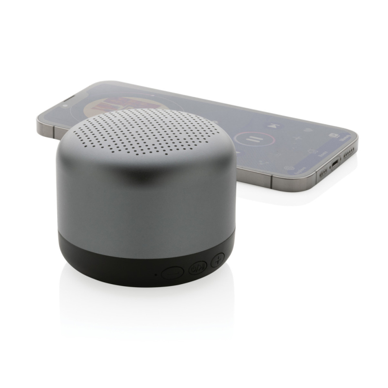 Bezdrátový reproduktor s výkonem 5 W vyrobený z recyklovaného hliníku a ABS plastu s RCS certifikací. RCS (Recycled Claim Standard) je globální standard, který umožňuje ověřit použití recyklovaného materiálu v produktu napříč celým dodavatelským řetězcem. Celkový podíl recyklátu dle váhy produktu: 35 %. Hliník při recyklaci nijak neztrácí své vlastnosti, lze jej tedy opakovaně recyklovat. Baterie s kapacitou 600 mAh umožňuje poslech po dobu až 4 hodin. Plné nabití již za 2 hodin. BT 5.0 pro kvalitní bezdrátové připojení na vzdálenost až 10 m. Včetně USB C nabíjecího kabelu z RCS recyklovaného hliníku, TPE a PET. Baleno v FSC® dárkové krabičce.