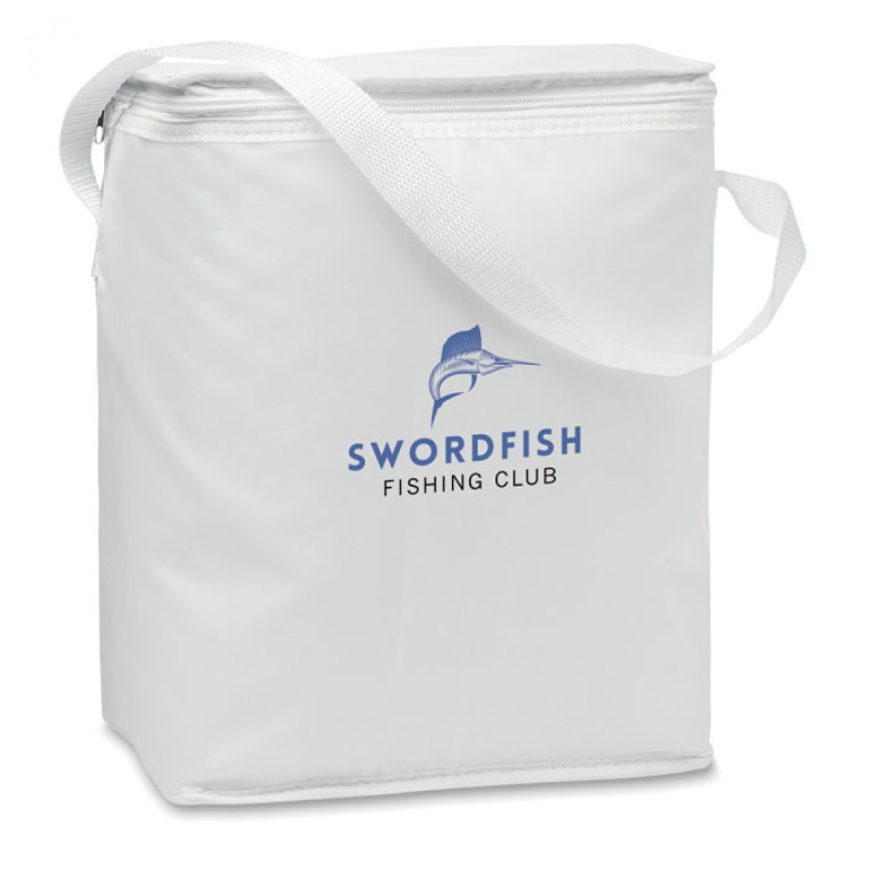 Chladicí taška z hliníkové folie na 6 láhví o objemu 1.5 l z 210 polyesteru. Zvenku netkané s bílými ozdobami. 80 g/m². Izolační materiál: Hliníková folie. Kapacita 12,5L.