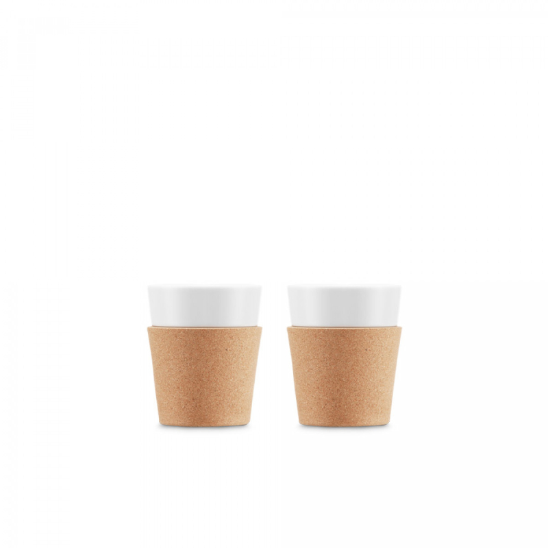 Sada 2 hrnků z kvalitního porcelánu. Hrnky Bistro mají korkovou objímku pro lepší kontrolu a bezpečnost při manipulaci s horkými tekutinami. Jsou vhodné do mrazničky, mikrovlnné trouby a myčky nádobí s výjimkou korkového obalu. Mají objem až 170 mL. Dodáváno v dárkové krabičce. 55 x 80 x 74 mm