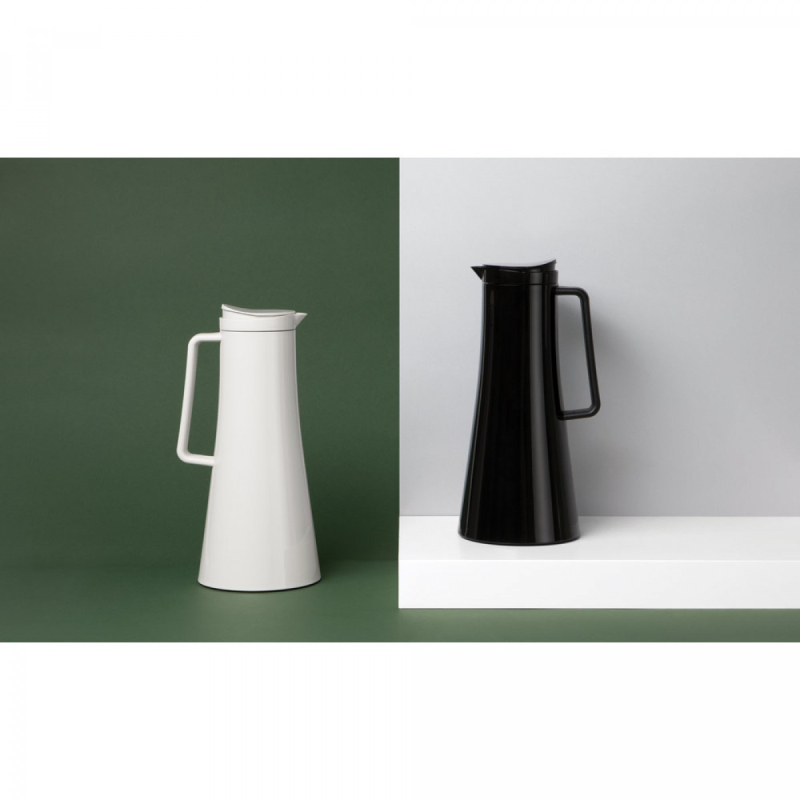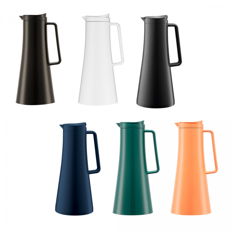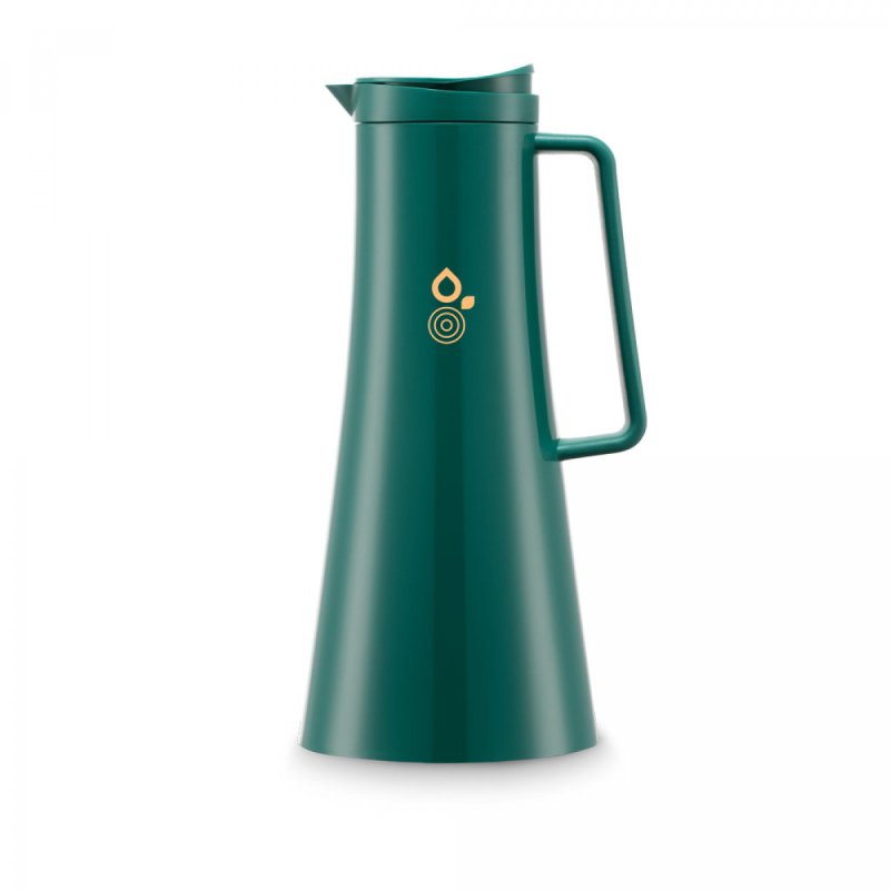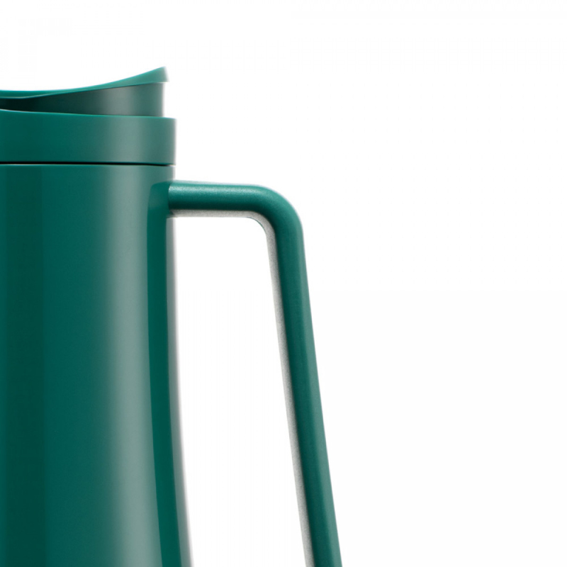 Termoska z nerezové oceli, plastu a silikonu. Objem 1.1 litru. 158 x 300 x 134 mm
