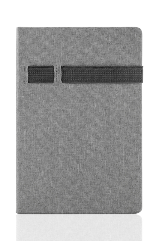 Poznámkový blok HOLDI je vybaven velmi zajímavým obalem v šedé barvě, který připomíná lněný materiál. Uzavírán pomocí barevné gumičky, která může sloužit také i jako místo na propisky nebo jiné nutné předměty. Poznámkový blok A5. 80 řádkovaných listů. Tloušťka papíru 80 gsm