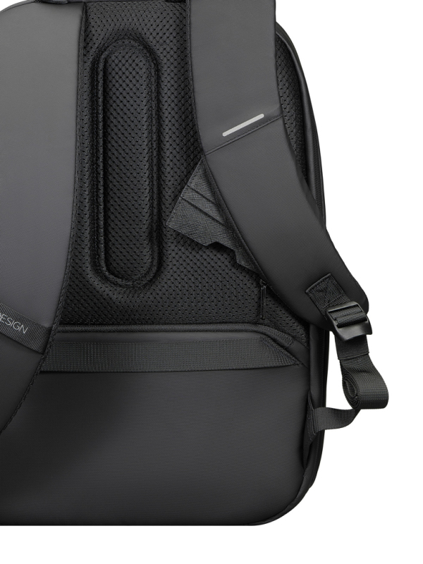 Nedobytný batoh Bobby Edge se vyznačuje vylepšenými bezpečnostními prvky, samo uzamykacím kovovým zipem, lehkou váhou a odolnou konstrukcí. Díky vodu odpuzující vnější části a voděodolným zipům je vhodný i pro outdoorové aktivity. Chytře organizovaná vnitřní část, skryté kapsy s RFID ochranou, skrytá kapsa pro vložení sledujícího přívěsku. Bobby Edge kombinuje moderní design, pokročilé bezpečnostní prvky a nabízí stylové a bezstarostné cestování. Voděodolný materiál vyrobený z recyklovaného polyesteru včetně skenovatelné složky AWARE™ garantující obsah recyklátu. Obsah recyklované složky: 14 %. Ochranný vzor®