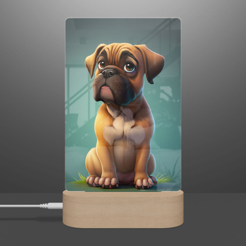 Součástí balení je akrylové sklo dle výběru, dřevěný RGB LED stojánek a napájecí USB kabel.
