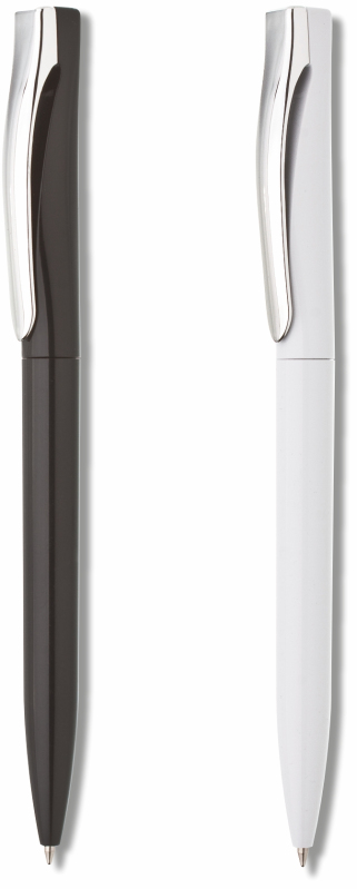 Plastové, kuličkové pero BONA má černé tělo s vysoce lesklým pochromovaným klipem. Má otočný mechanismus a náplň X 20 -10,6cm, modře píšící. Kolekce DESIGN.