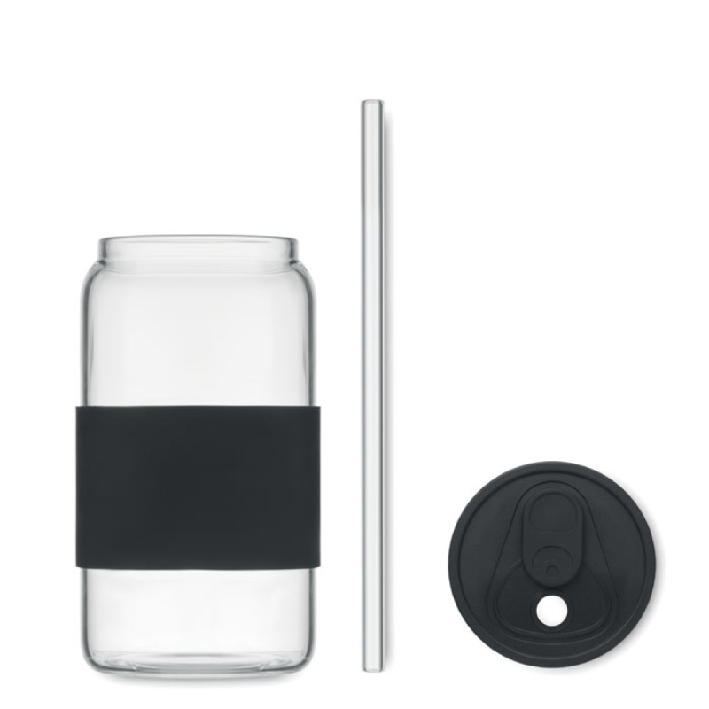 Sklenice z borosilikátového skla se silikonovým víčkem a úchytem. Včetně brčka z borosilikátového skla. Objem: 550 ml.