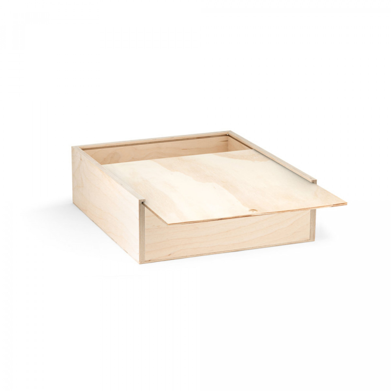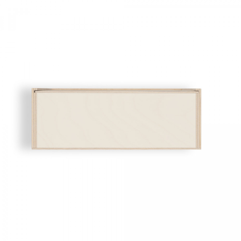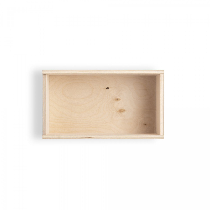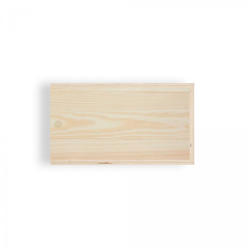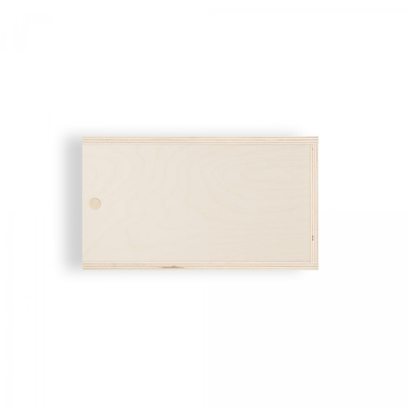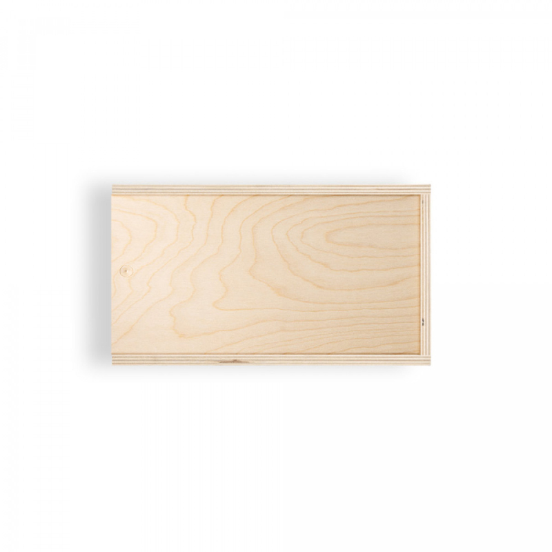 Krabice z překližky s posuvným víkem, ze stejného materiálu. Velikost M.290 x 165 x 105 mm