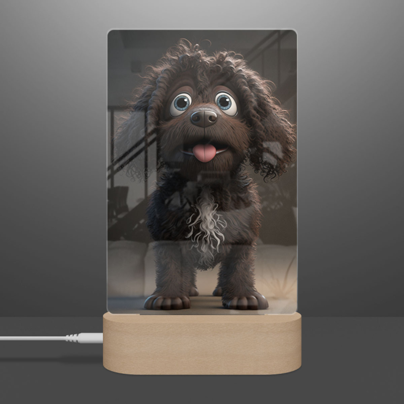 Lampa s digitální grafikou psa