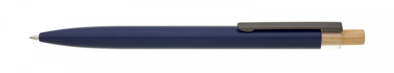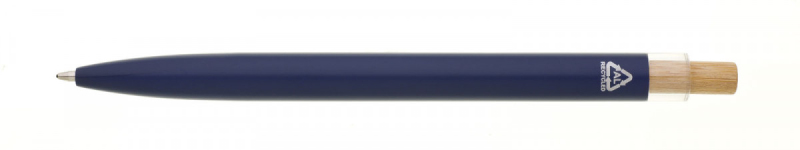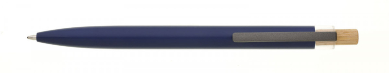 Žlutá designová kovová propiska z recyklovaného hliníku. Tmavý kovový klip je uchycen v ozdobné transparentní koncovce, doplněné bambusovým klipem. Náplň velkoobsahová, modře píšící. Kolekce SAVE THE NATURE.