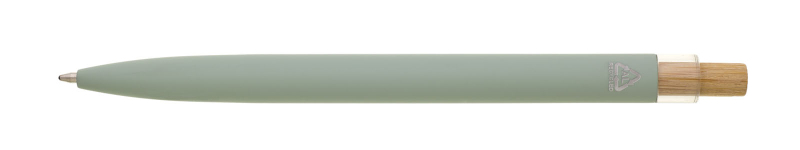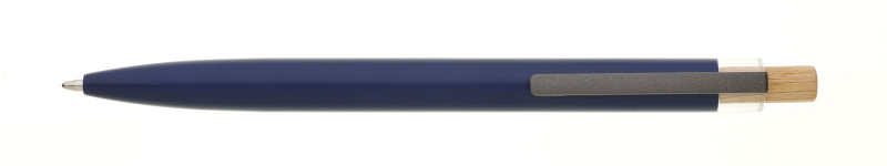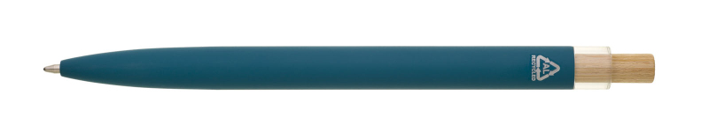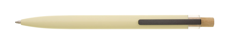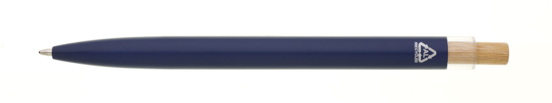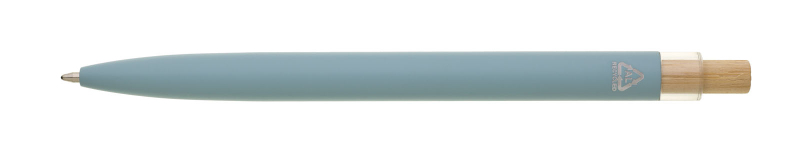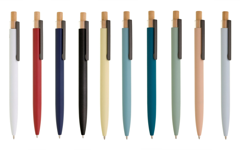 Žlutá designová kovová propiska z recyklovaného hliníku. Tmavý kovový klip je uchycen v ozdobné transparentní koncovce, doplněné bambusovým klipem. Náplň velkoobsahová, modře píšící. Kolekce SAVE THE NATURE.