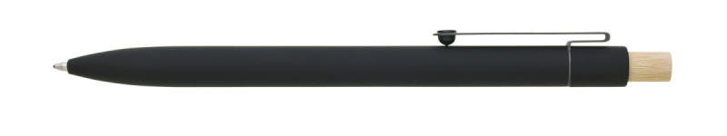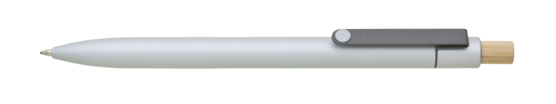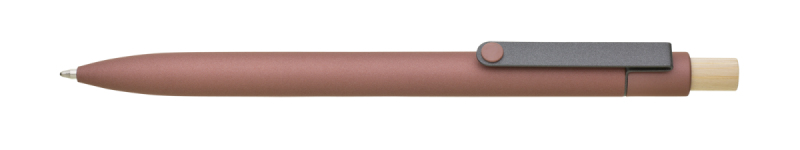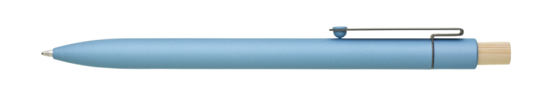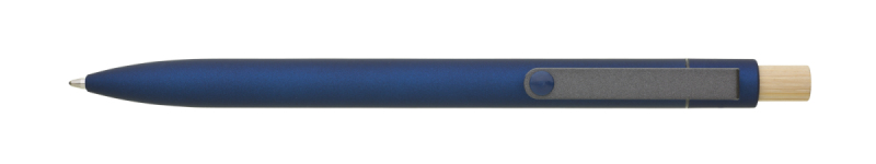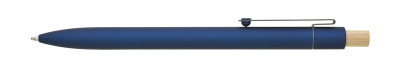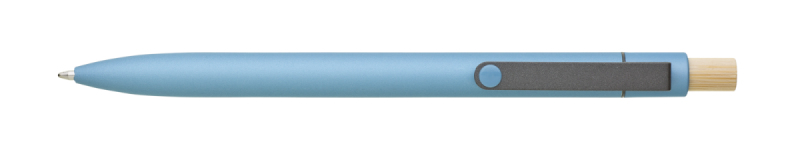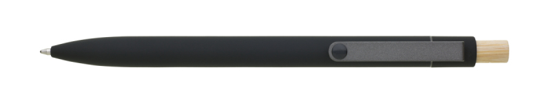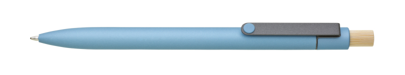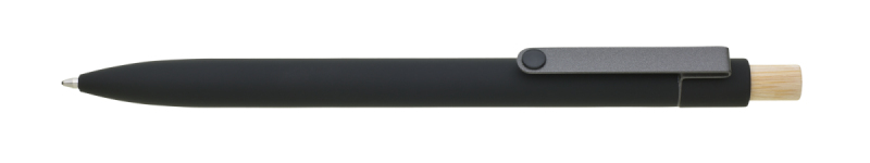 BRANIX SOFT RE designová kovová propiskas matným soft povrchem z recyklovaného hliníku. Propiska je doplněna tmavým kovovým klipem a bambusovým cvakátkem. Velkoobsahová náplň píše modře.