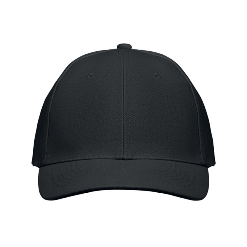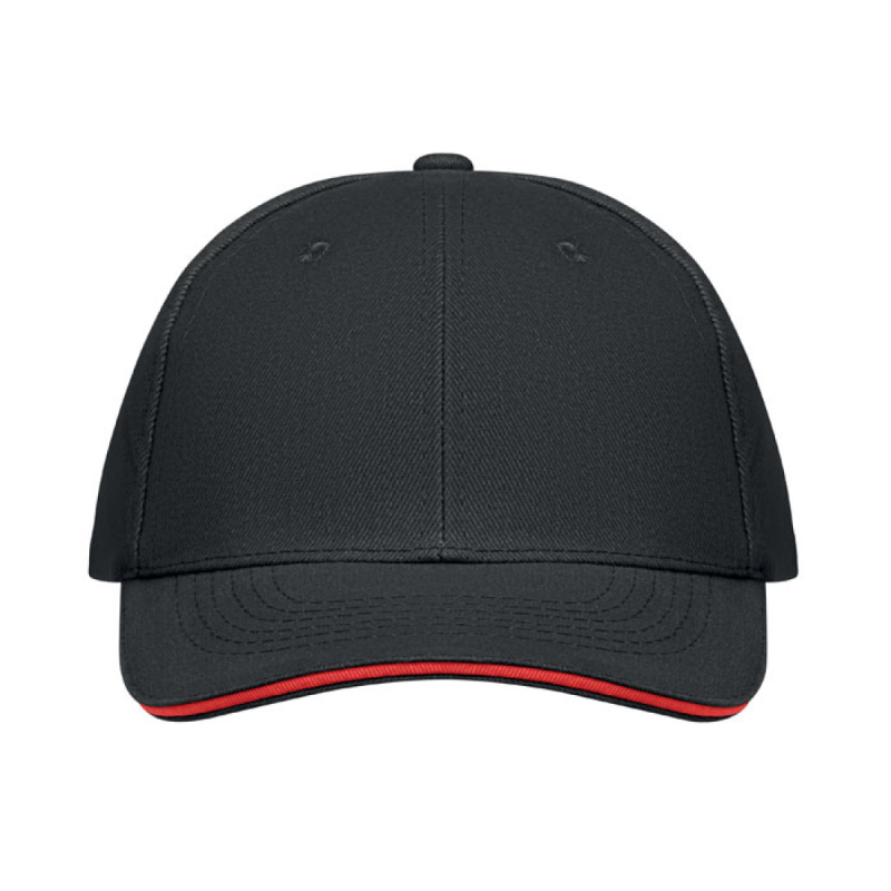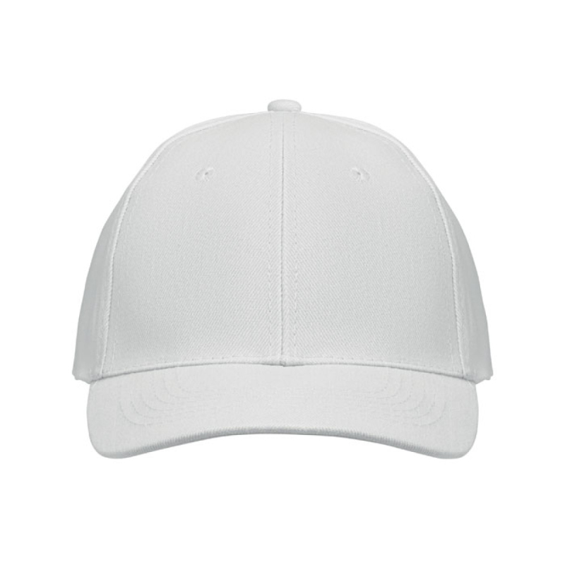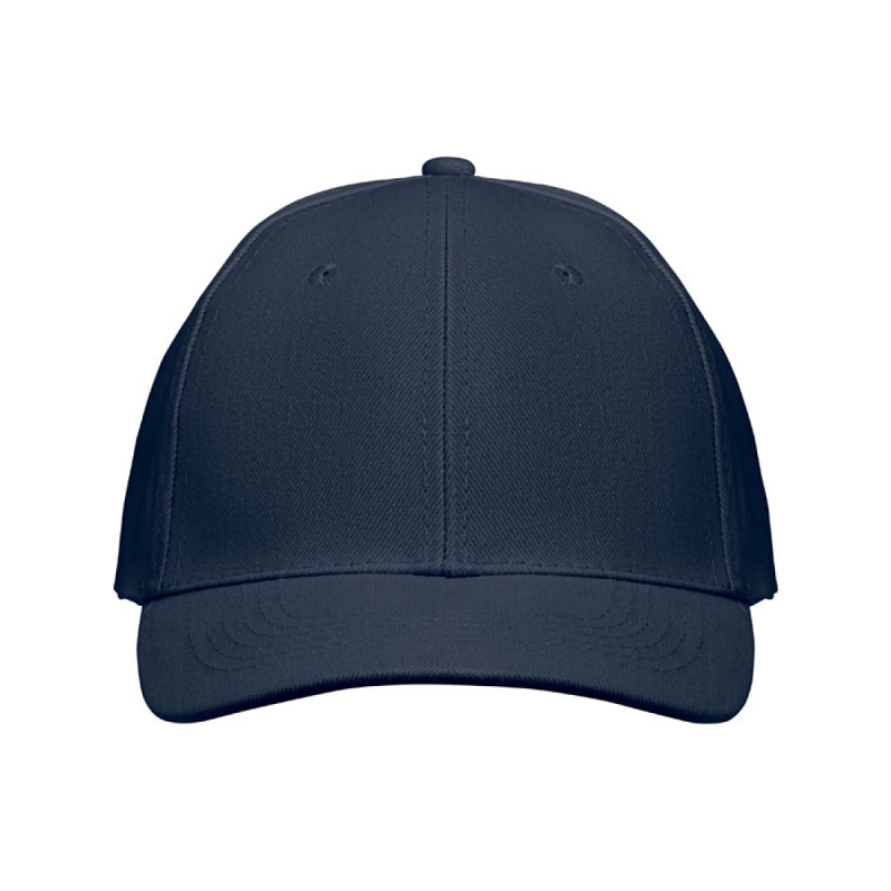 Šestipanelová baseballová čepice z broušené bavlny 260 gr/m² se stříbrnou ocelovou sponou a 6 vyšívanými očky ve stejné barvě. Velikost 7 1/4.