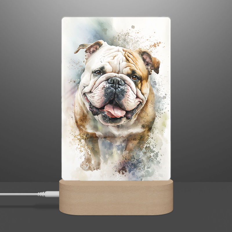 Součástí balení je akrylové sklo dle výběru, dřevěný RGB LED stojánek a napájecí USB kabel.
