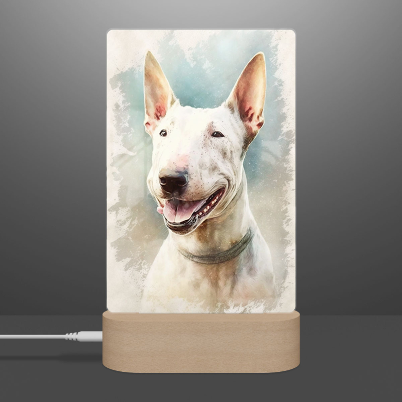 Součástí balení je akrylové sklo dle výběru, dřevěný RGB LED stojánek a napájecí USB kabel.