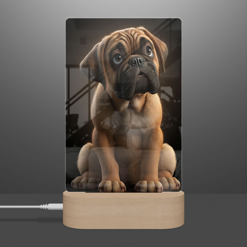 Součástí balení je akrylové sklo dle výběru, dřevěný RGB LED stojánek a napájecí USB kabel.