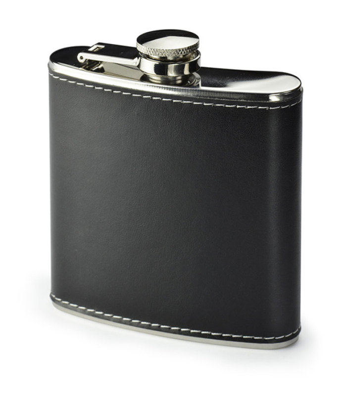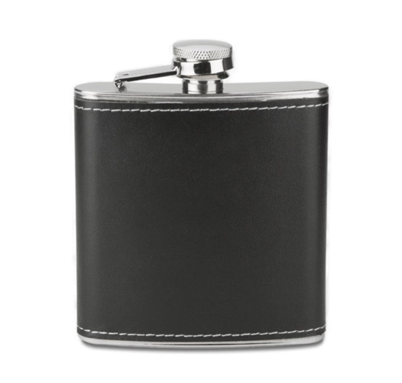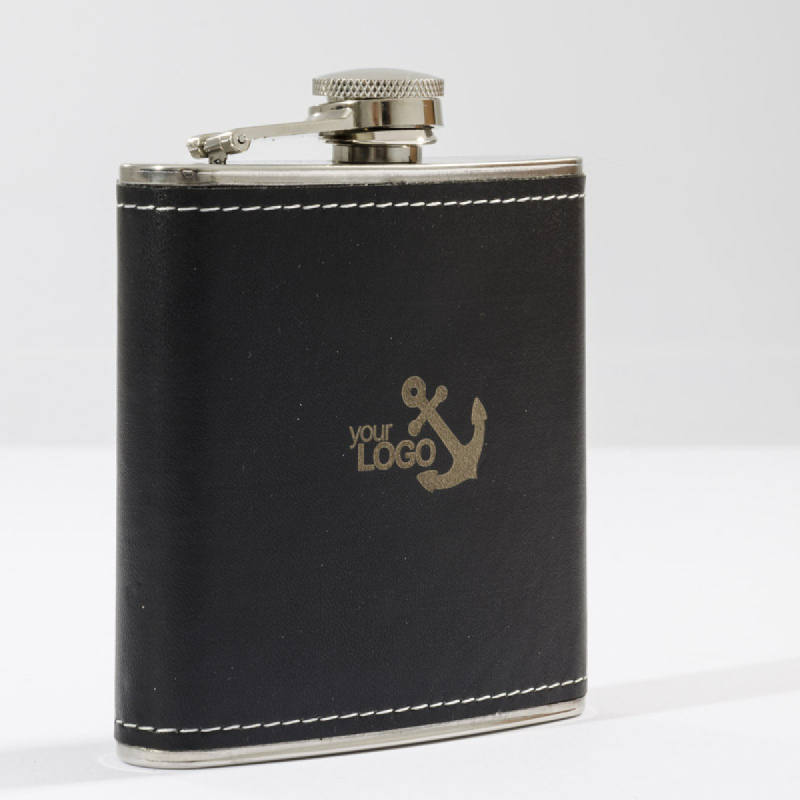 Velmi stylová láhev z kovu a ekokožení. Kapacita 6 uncí. Logo bude vyryté.