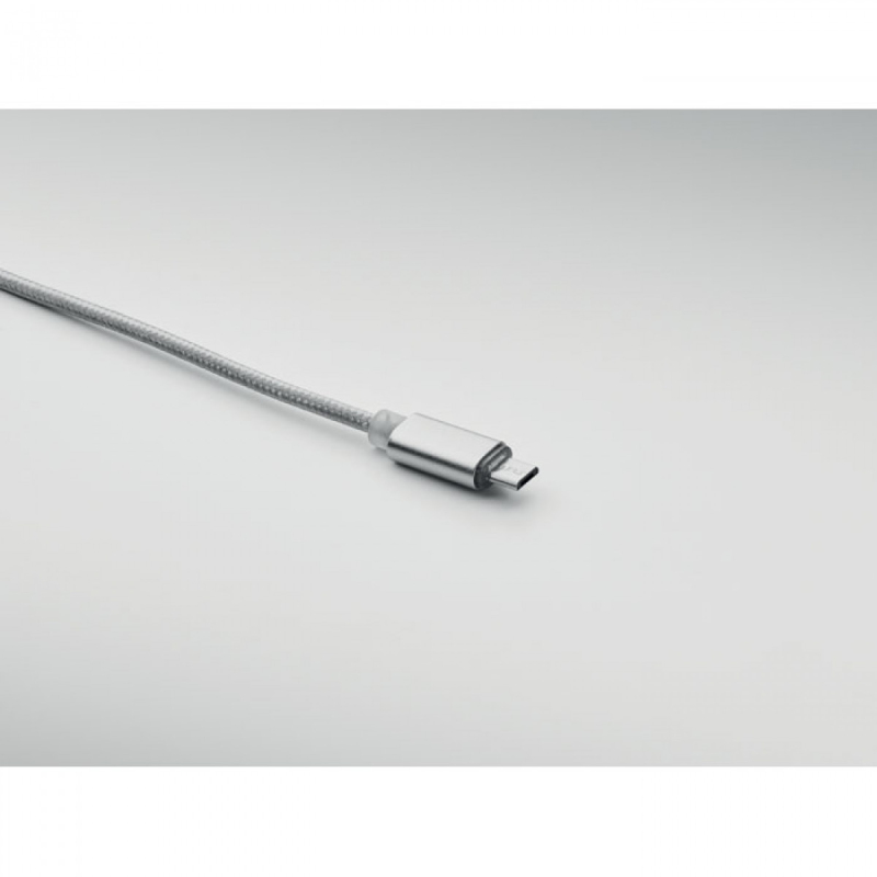 Nabíjecí kabel z hliníku. Vstup: 2v1 typ C a typ A a micro-B (2v1), výstup typ C a micro B. Délka kabelu: 120 cm.