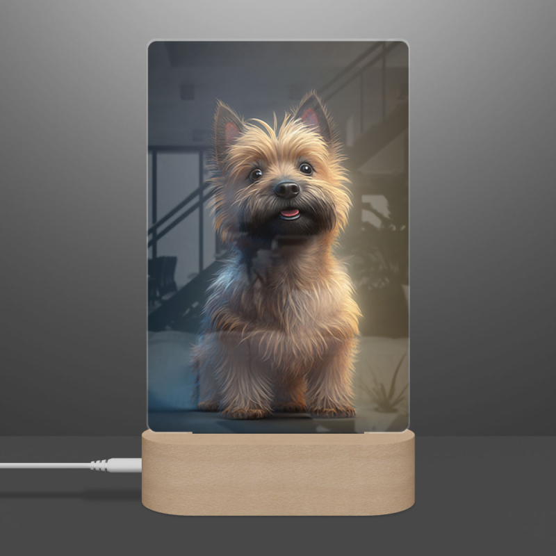 Součástí balení je akrylové sklo dle výběru, dřevěný RGB LED stojánek a napájecí USB kabel.