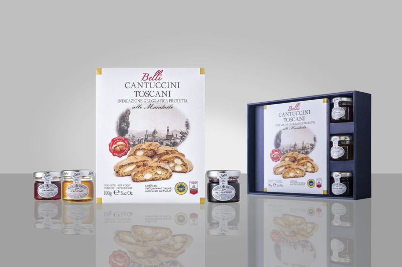 Obsahuje: mandlové sušenky Cantuccini 100 g, Wilkin & Sons džem jahodový 28 g, Wilkin & Sons džem borůvkový 28 g, Wilkin & Sons Med 28 g