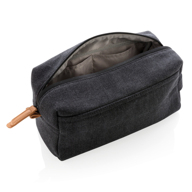 Odolná toaletní taštička z přírodního textilního plátna (canvas). Skvělým společníkem na cesty k uschování všech vašich toaletních potřeb. PVC free.