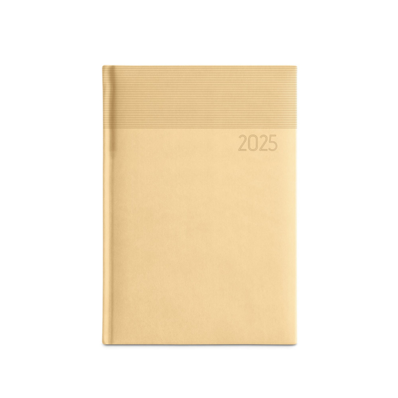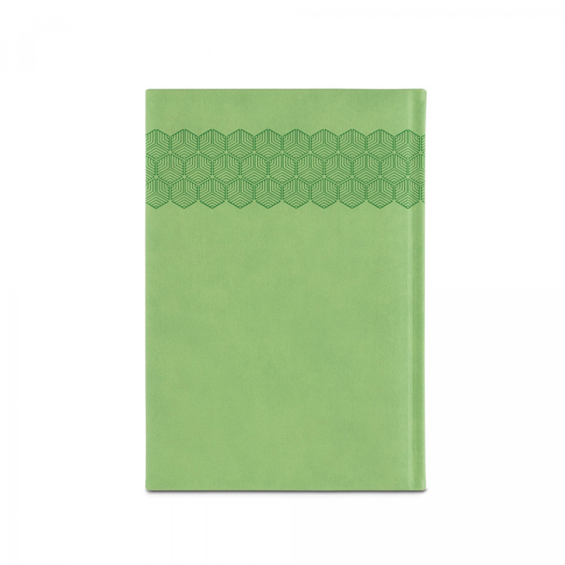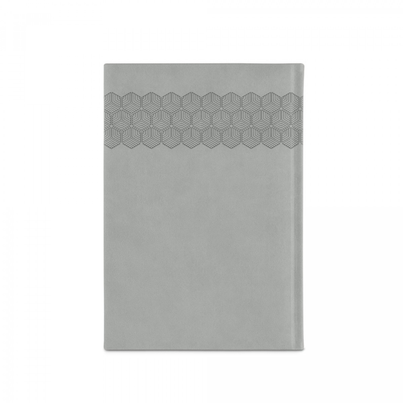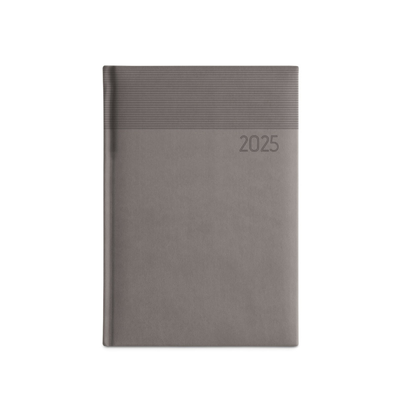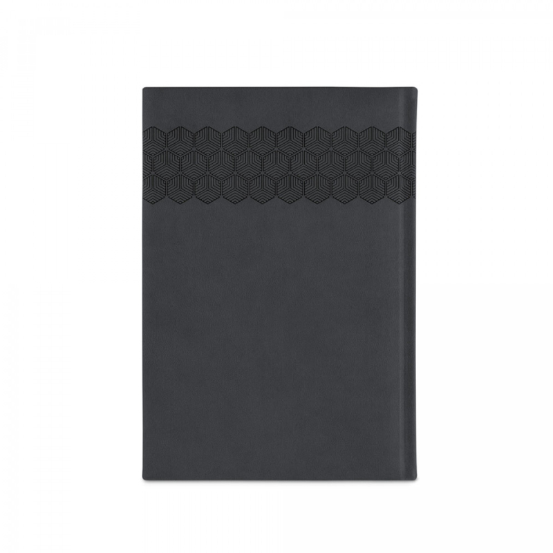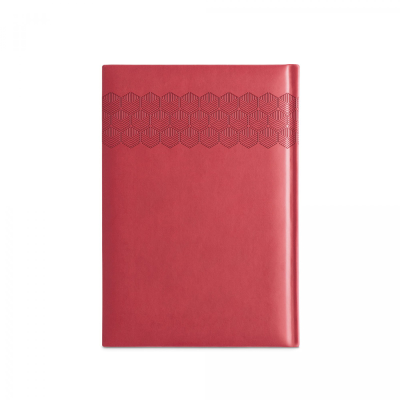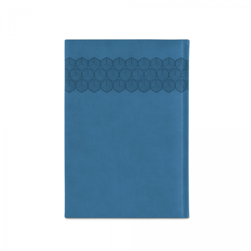 Deník ve formátu A5 z polyuretanu (PU) s potisknutým vzorem a označovačem pomocí stuhy. Je organizovaný do denního plánu. 148 x 210 mm