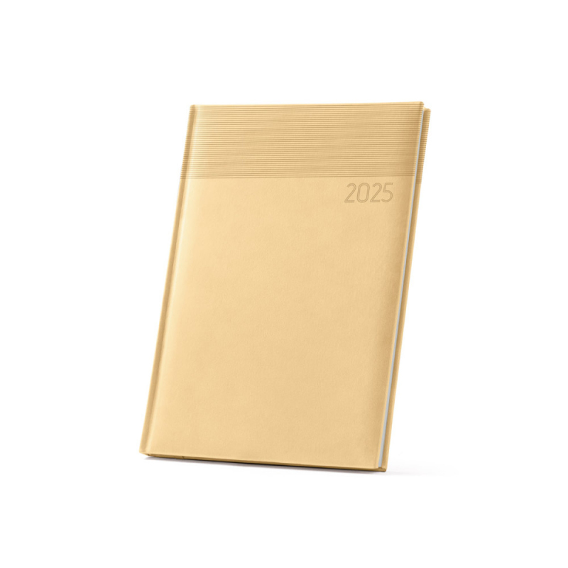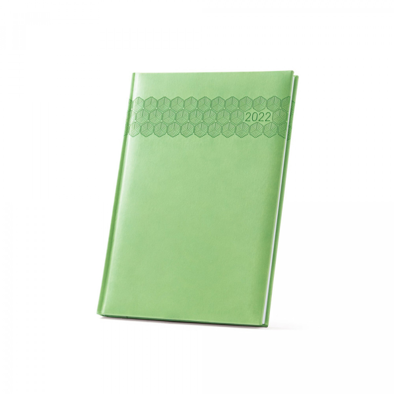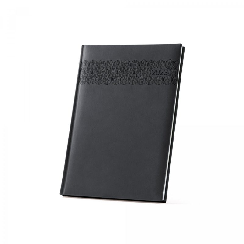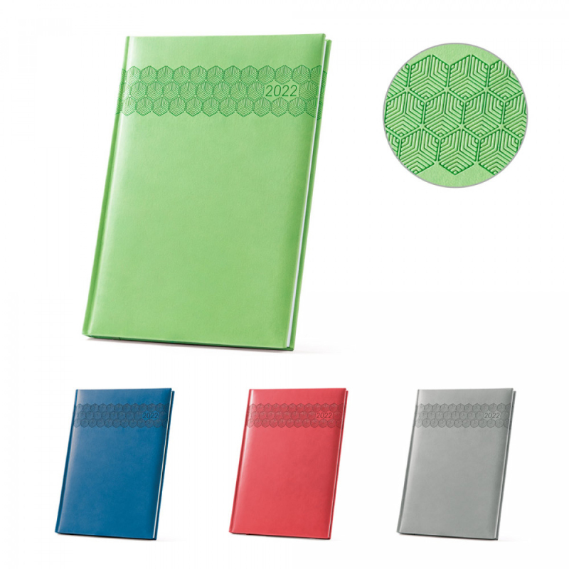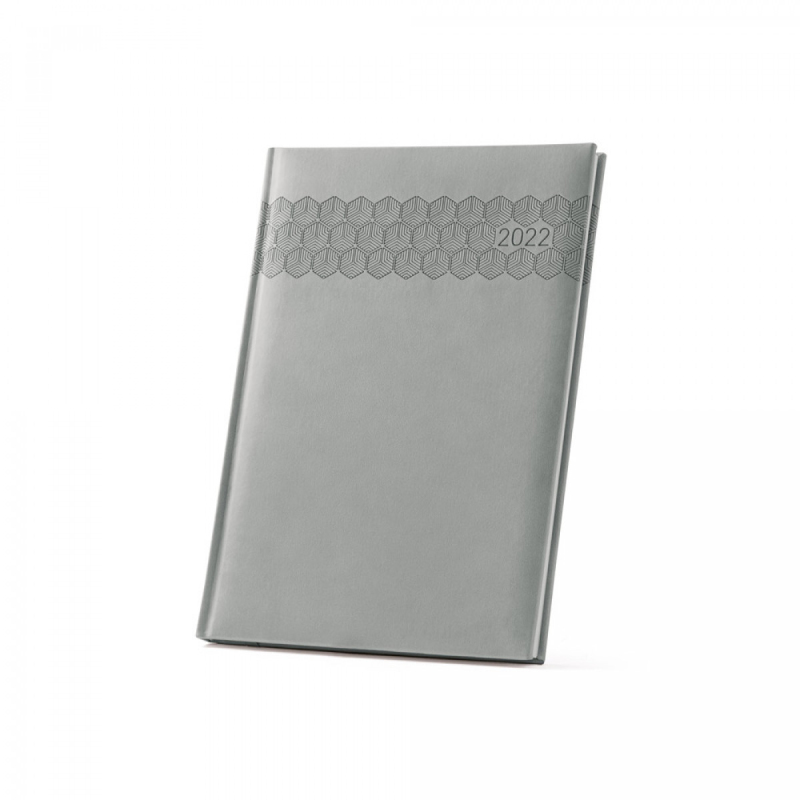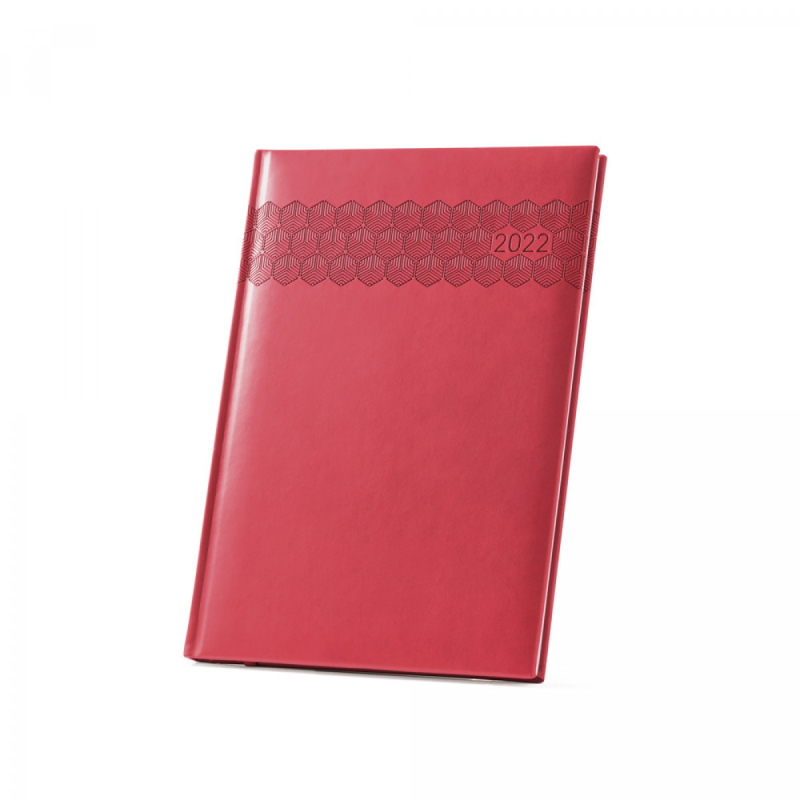 Deník ve formátu B5 z polyuretanu (PU) s potisknutým vzorem a označovačem pomocí stuhy. Je organizovaný do týdenního plánu. 175 x 245 mm