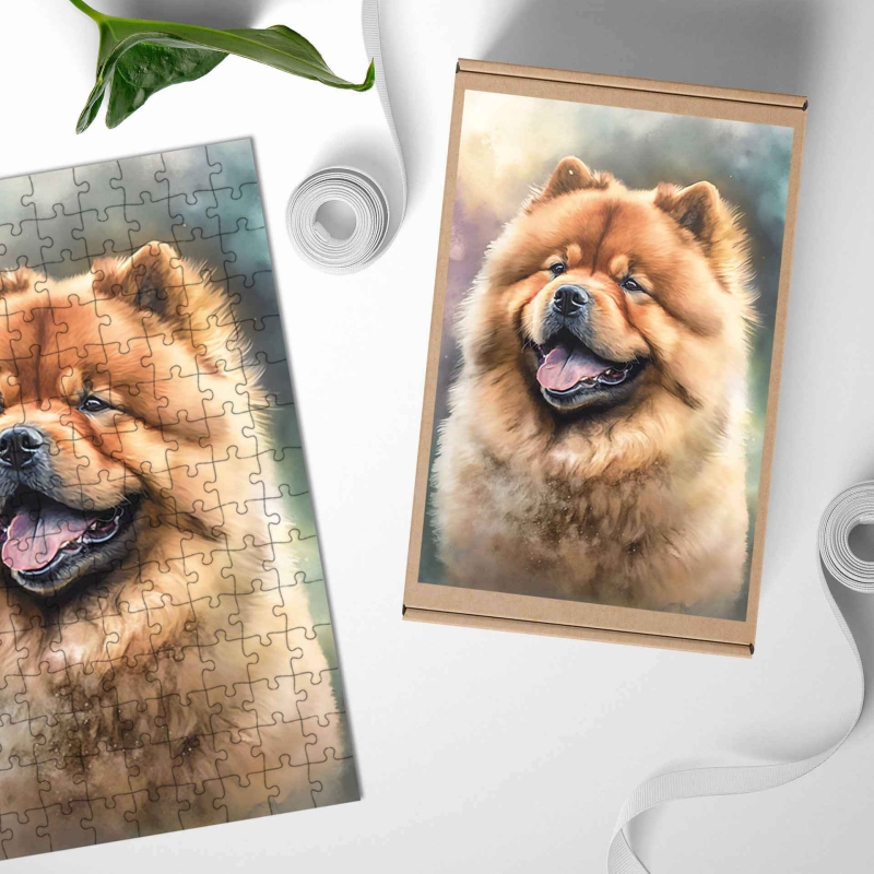 Dřevěné puzzle Čau čau akvarel