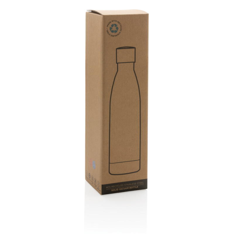 Nepropustná termo lahev s bezpečným šroubovacím uzávěrem a jednoduchým aktraktivním designem. Úzké tělo pasuje do většiny automobilových držáků na nápoje. Dvoustěnná vakuová izolace uchová nápoj horký po dobu až 5h a studený až 15h. Vyrobeno z RCS recyklované nerezavějící oceli. RCS (Recycled Claim Standard) je globální standard, který umožňuje ověřit použití recyklovaného materiálu v produktu napříč celým dodavatelským řetězcem. Podíl použitého recyklovaného materiálu vzhledem k celkové váze produktu: 93 %. Bez BPA. Objem: 500 ml. Baleno v FSC kraftové krabičce.
