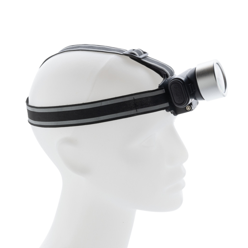 3 LED žárovky + 1 kryptonová žárovka s přepínačem se 2 funkcemi a nastavitelným hlavovým popruhem.