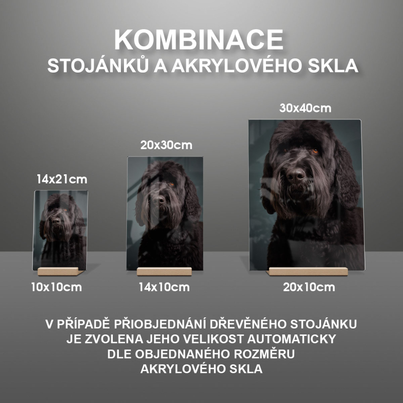 V případě přiobjednání dřevěného stojánku je zvolena jeho velikost automaticky dle objednaného rozměru akrylového skla viz produktové foto.