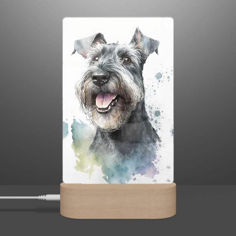 Součástí balení je akrylové sklo dle výběru, dřevěný RGB LED stojánek a napájecí USB kabel.