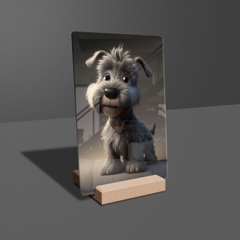 Dárková deska s digitální grafikou psa z akrylového skla.