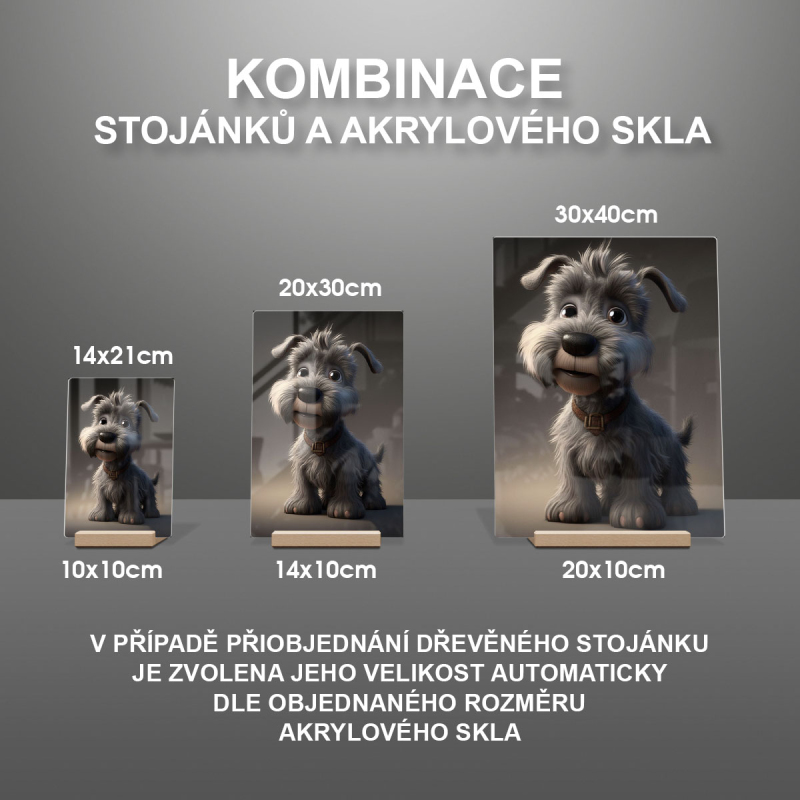 V případě přiobjednání dřevěného stojánku je zvolena jeho velikost automaticky dle objednaného rozměru akrylového skla viz produktové foto.