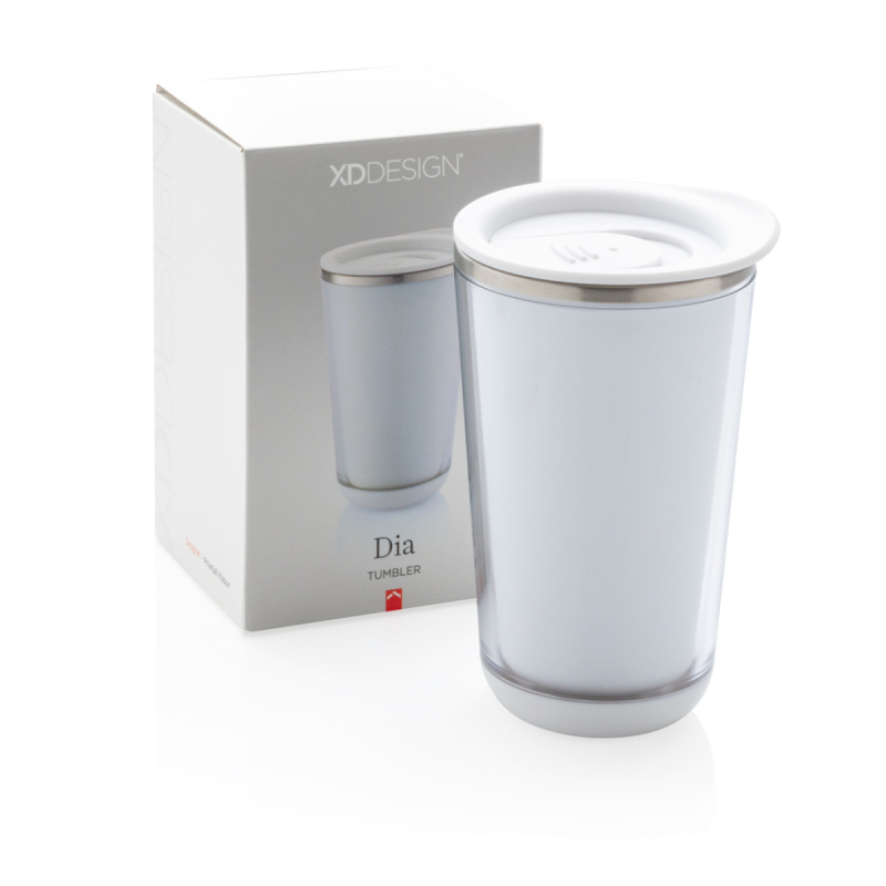 Dia je hrnek ideální na cesty s dvojitou stěnou s vnitřní částí z odolné nerez oceli 304. Dvojitá stěna a uzavírací víko umožňují přenášení horkých nápojů bez popálení či rozlití. Navržen tak, aby jej bylo možné snadno rozebrat a recyklovat. Objem 350 ml. Bez BPA. Pouze pro ruční mytí. Ochranný vzor®