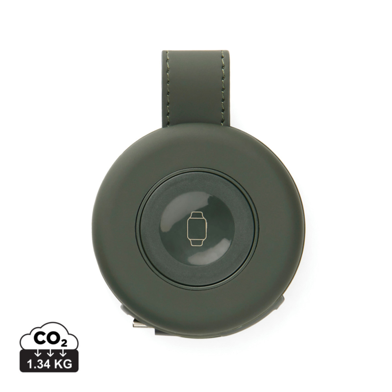 Bezdrátová cestovní nabíječka Baltimore 2 v 1 je navržena tak, aby poskytovala rychlé a snadné nabíjení. Lehká a funkční, eliminuje zmatek kabelů a nahrazuje více nabíječek jedním elegantním řešením. Vyrobena z recyklovaného ABS certifikovaného podle RCS s klasickým matným PU povlakem Baltimore nabízí elegantní, minimalistický vzhled. Kompaktní a připravená na cesty, bezdrátově nabíjí váš telefon i hodinky současně. S kompatibilitou Qi, přesným magnetickým zarovnáním a rychlým bezdrátovým nabíjením zůstávají vaše zařízení dokonale umístěna a nabíjejí se rychle. Jednoduše ji připojte ke zdroji napájení USB-C pro bezproblémové a uspořádané nabíjení. Kompatibilní se zařízeními s podporou Qi, včetně telefonů a hodinek Apple a Samsung. Vstup Type-C: 5V/3A, 9V/2A. Bezdrátový výstup: Telefon 5W/7,5W/10W/15W (MAX), Hodinky 2,5W (MAX). Celkový obsah recyklovaného materiálu: 36 % na základě celkové hmotnosti výrobku. Certifikováno společností Control Union, CU1162221.