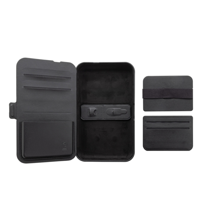 Pevné cestovní pouzdro s integrovanou bezdrátovou nabíječkou 3 v 1 vyrobené z recyklovaného PU RCS. Celkový recyklovaný materiál: 5 % na základě celkové hmotnosti produktu. Certifikace RCS zajišťuje kompletně certifikovaný dodavatelský řetězec recyklovaných materiálů. Cestovní pouzdro má úložný prostor pro cestovní pas několik karet. Cestovní pouzdro je vybaveno magnetickou 15W bezdrátovou nabíječkou, 5W bezdrátovou nabíječkou vhodnou pro pouzdro na sluchátka nebo jiná malá zařízení s možností bezdrátového nabíjení a 2,5W bezdrátovou nabíječkou pro chytré hodinky (pouze hodinky Apple). Součástí balení je 120 cm kabel TPE. Baleno ve směsném obalu FSC®. Pouzdro a příslušenství 100% bez PVC. Minimální příkon: 9V/3A pro optimální použití. Výstup: Telefon: 9V/1.1A; 9V/1.67 A/(15W), Sluchátka: 5V/1A (5W), Hodinky: 5V/0.5A.