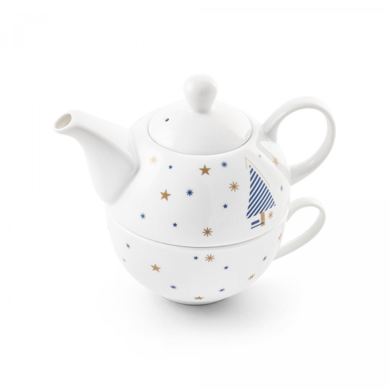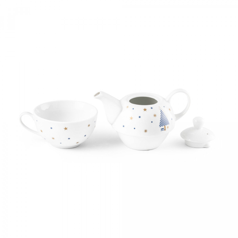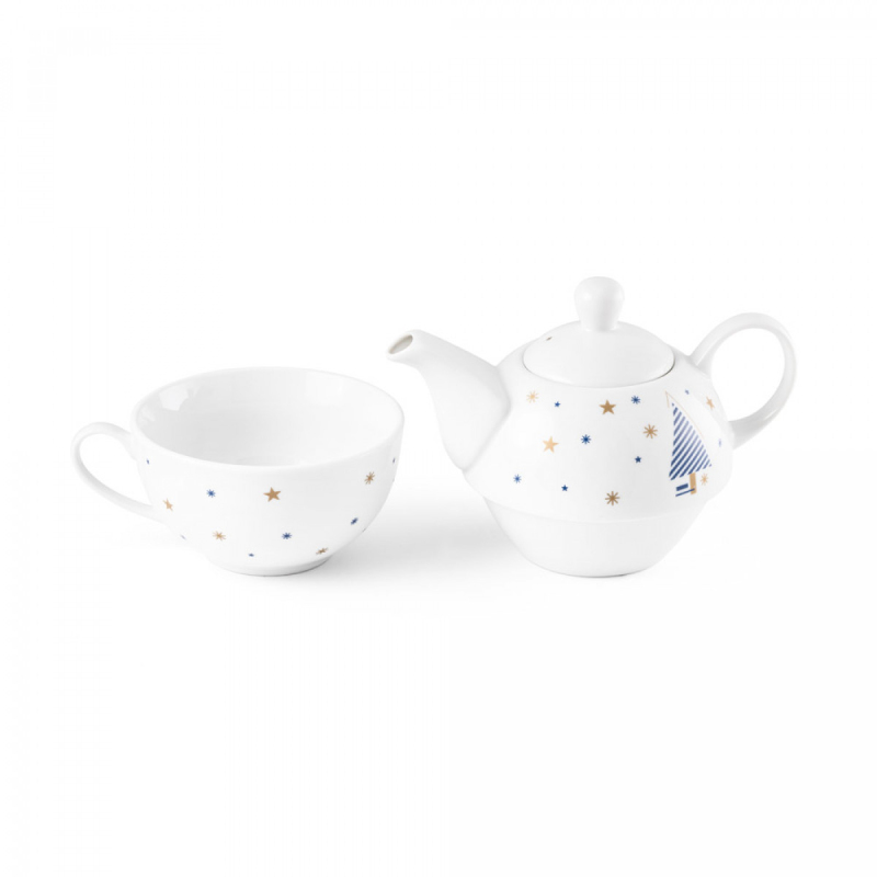 Porcelánová čajová sada s vánočním potiskem. Konvice má kapacitu až 430 mL a kapacitu šálku až 220 mL. Dodává se v přizpůsobitelné krabičce. 147 x 113 x 143 mm