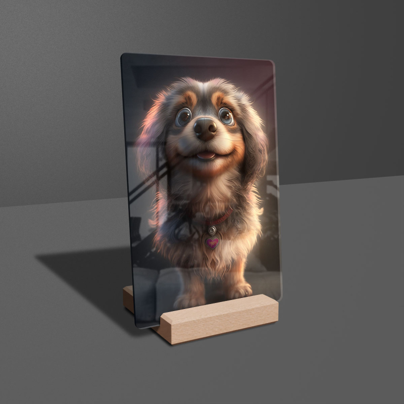 Dárková deska s digitální grafikou psa z akrylového skla.