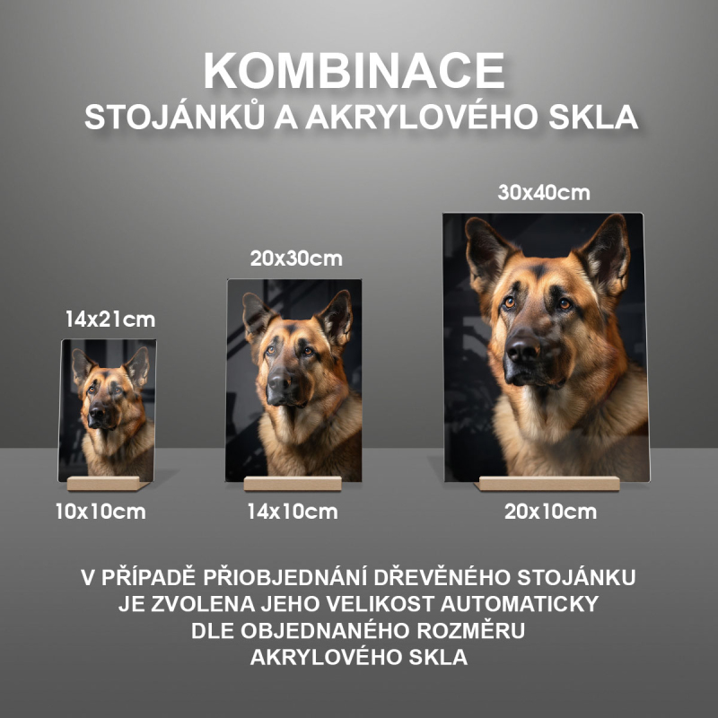 V případě přiobjednání dřevěného stojánku je zvolena jeho velikost automaticky dle objednaného rozměru akrylového skla viz produktové foto.