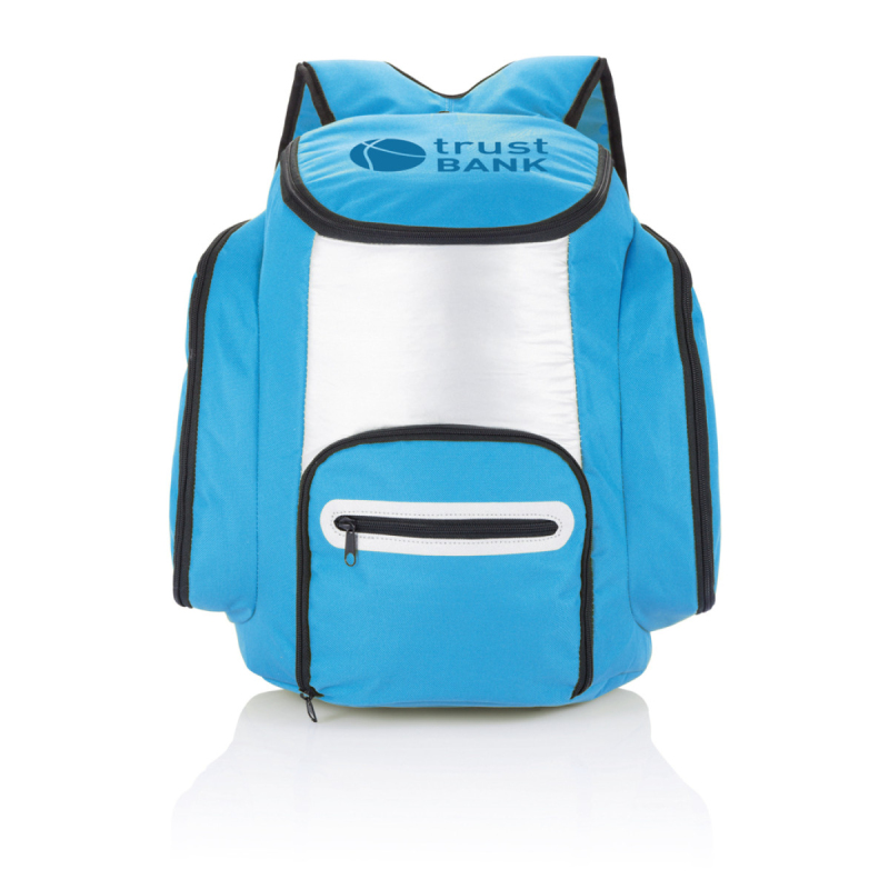 Chladicí batoh 600D se stříbrným vnitřkem udrží veškeré vaše jídlo a nápoje chladné. Na přední straně je další kapsa s potištěným barevným lemem kolem zipu pro uložení dalších věcí.