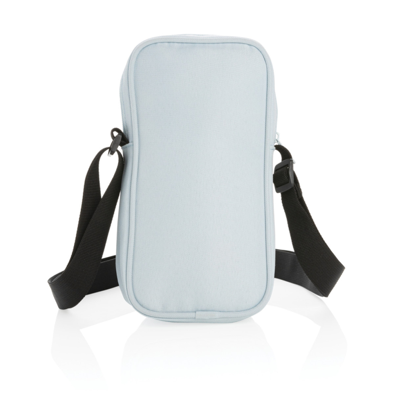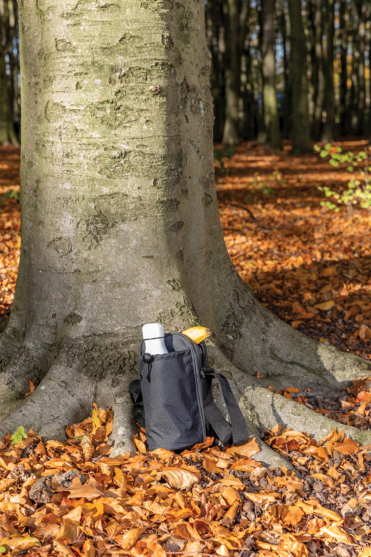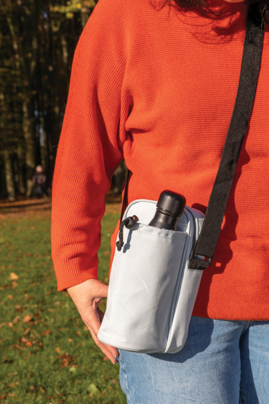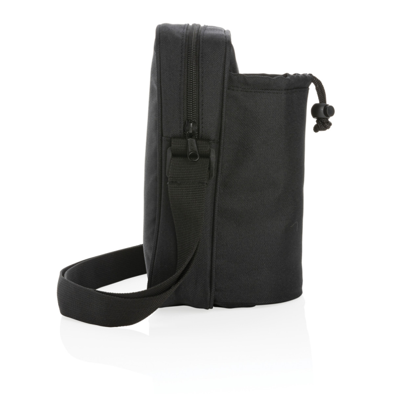 Unikátní chladící taška s příčným popruhem pro pohodlné nošení a volné ruce při outdoorových aktivitách. Hlavní oddíl na zip, stahovací šňůrky pro přenos lahve. Ideální velikost lahve je 25 x 7,5 cm. Přizpůsobitelný ramenní popruh. Vnější materiál 600D polyester, vnitřní 210D polyester a PEVA. Bez PVC.