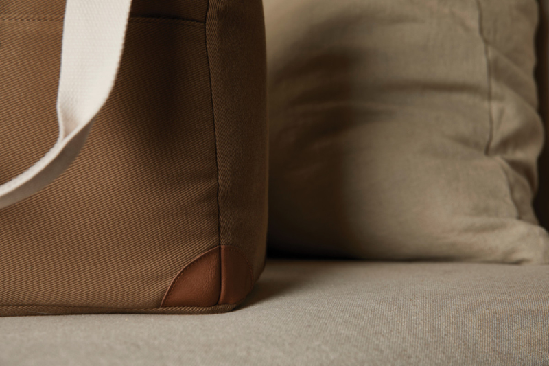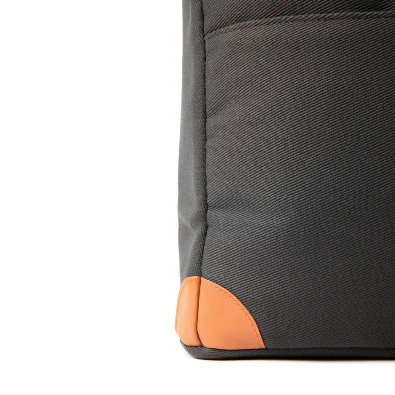 Elegantní chladící taška vyrobená z recyklovaného polyesteru tkaného tak, aby připomínal odolný plátěný kepr. Vnější tkanina je ze 100 % recyklovaného polyesteru z PET lahví. Detaily jsou vyrobené z PU kůže, kde se ve výrobním procesu používá především voda jako náhrada silných rozpouštědel. Tento proces je lepší jak pro pracovníky továrny, tak pro životní prostředí. Chladicí taška je podšitá tzv. PEVA materiálem, který se snadno udržuje čistý.