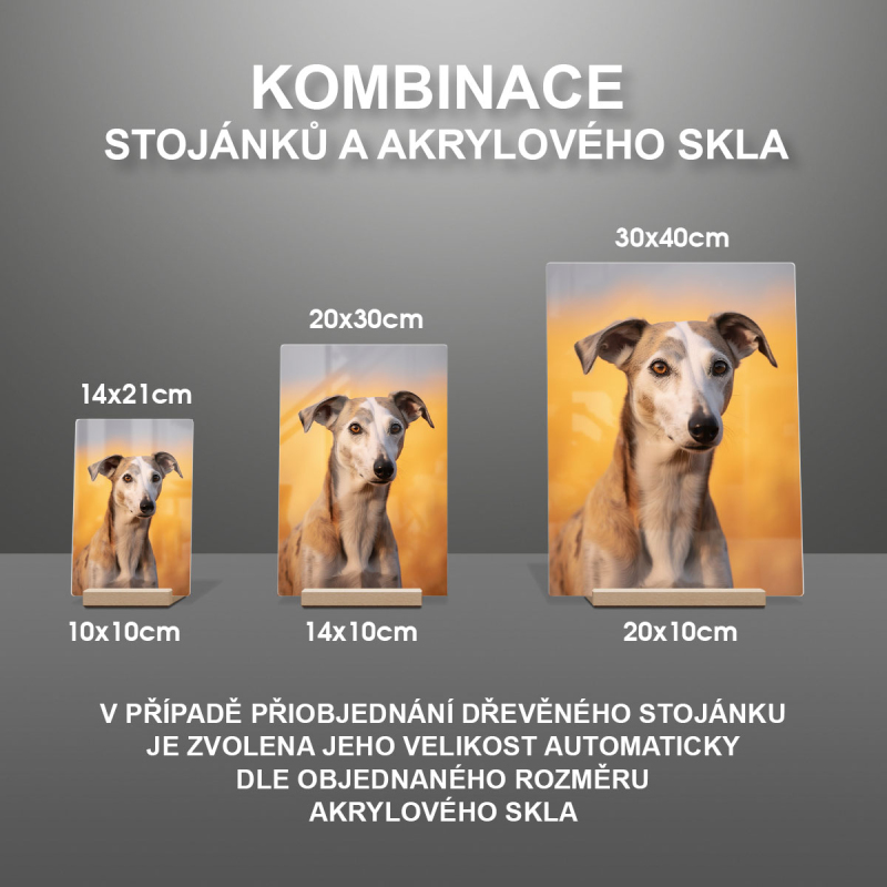 V případě přiobjednání dřevěného stojánku je zvolena jeho velikost automaticky dle objednaného rozměru akrylového skla viz produktové foto.