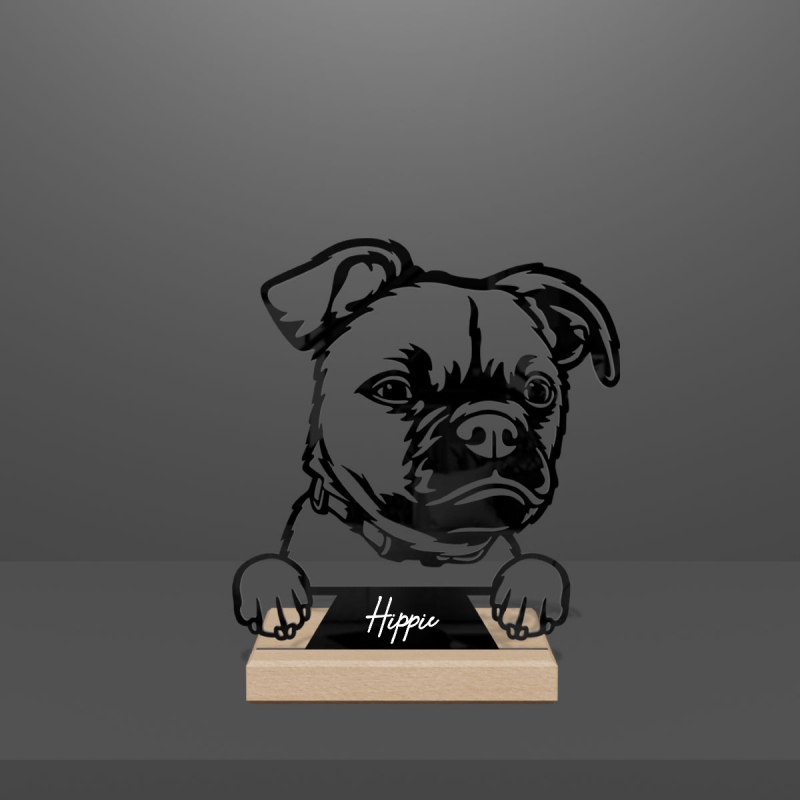Tato interiérová dekorace je ideální pro všechny milovníky zvířat a každého, kdo má doma svého čtyřnohého miláčka. Vyberte plemeno svého pejska, vyplňte jeho jméno a udělejte si radost krásnou dekorací v podobě Vašeho pejska. Motiv je vyroben z akrylového materiálu, který je velmi odolný. Tuto dekoraci lze použít pro různé interiéry, jako obývací pokoje, kanceláře nebo i dětské pokoje. Zároveň se jedná o originální dárek pro všechny, kteří sdílí své srdce se svým čtyřnohým miláčkem.