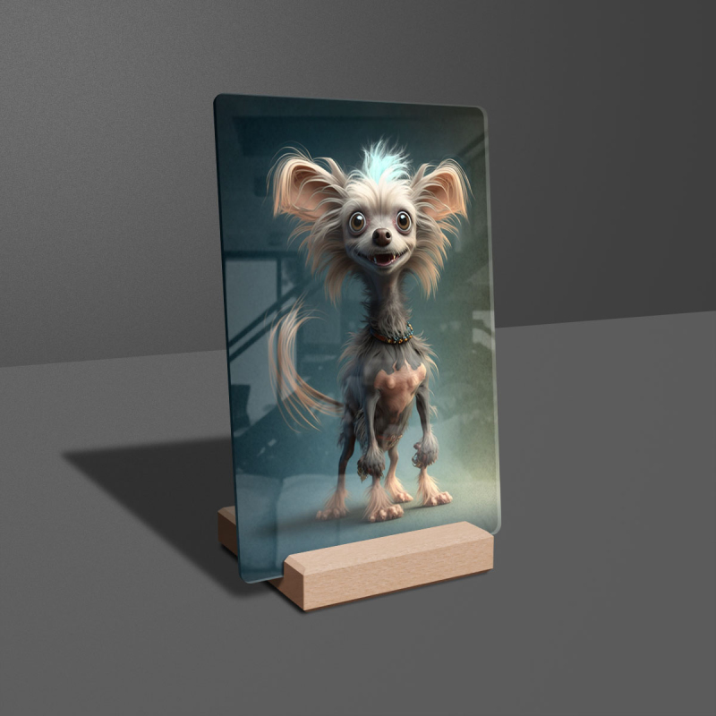 Dárková deska s digitální grafikou psa z akrylového skla.
