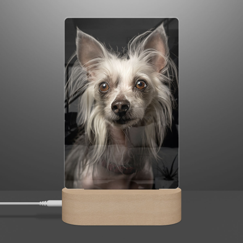 Součástí balení je akrylové sklo dle výběru, dřevěný RGB LED stojánek a napájecí USB kabel.