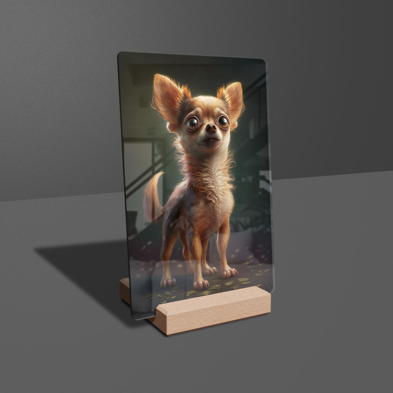 Dárková deska s digitální grafikou psa z akrylového skla.