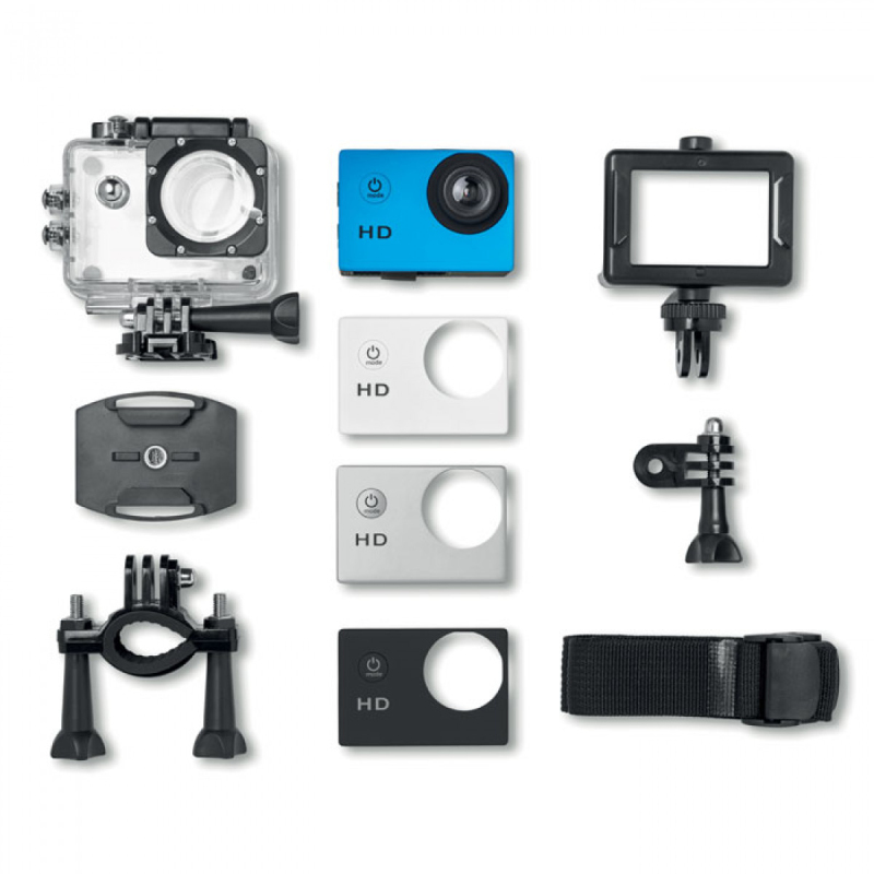 Rozlišení 720P, 4x digitální zoom, 120° čočka, 2’’ doteková obrazovka. Voděodolné pouzdro (do 10m), přísavka, držák na kolo/helmu. Micro SD karta není součástí.